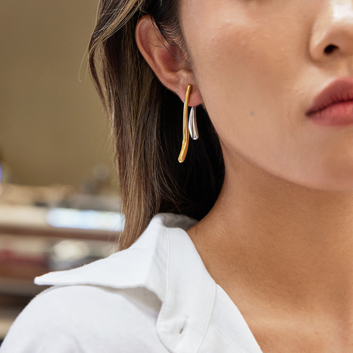 Zarcillos Largos Bicolor Doble Funcion