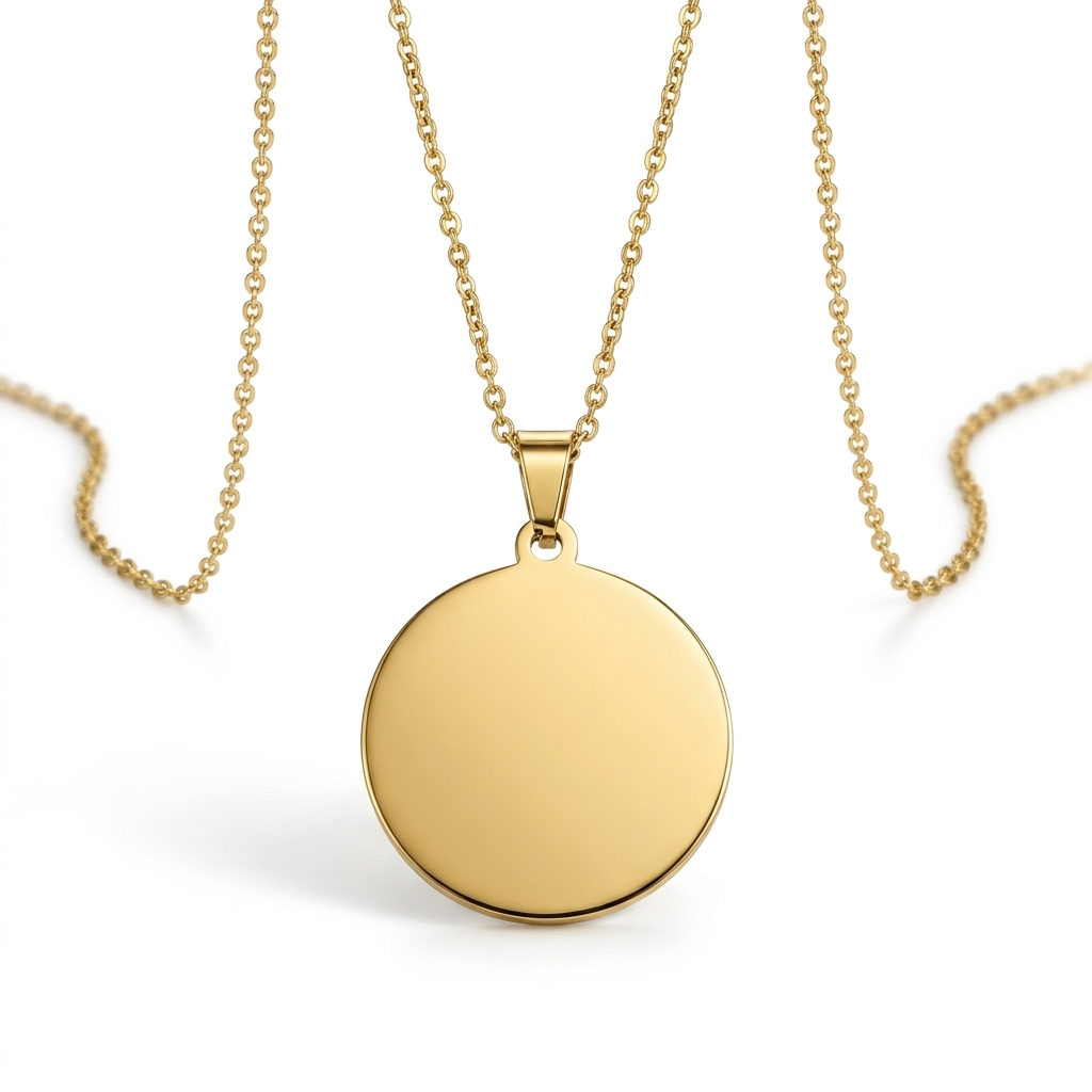 Acero inoxidable 316L con baño de oro 18k. Incluye grabado personalizado ambas caras.